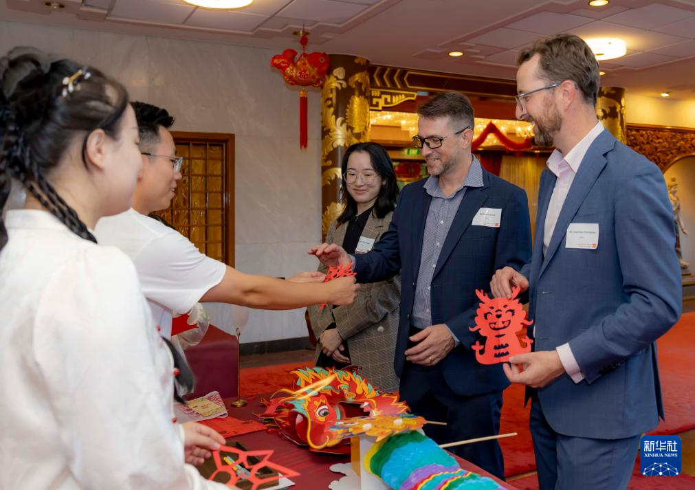 2月27日,在澳大利亞堪培拉中國駐澳大利亞大使館,來賓欣賞中國剪紙藝術。