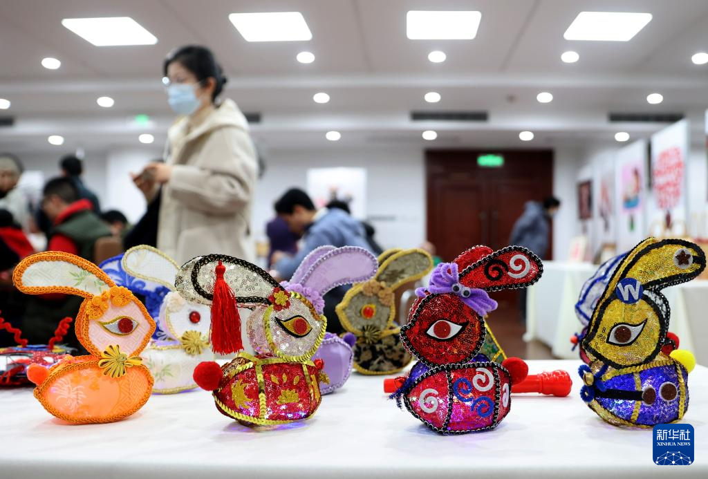 3月6日在巾幗園的非遺好物市集上拍攝的手工兔子燈。