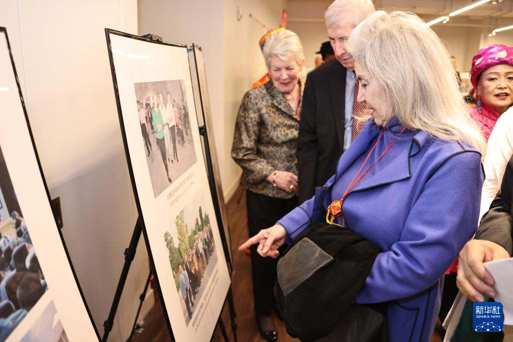 3月11日,美中關系全國委員會副會長白莉娟在美國紐約參觀“中美友好在廣西”圖片展。