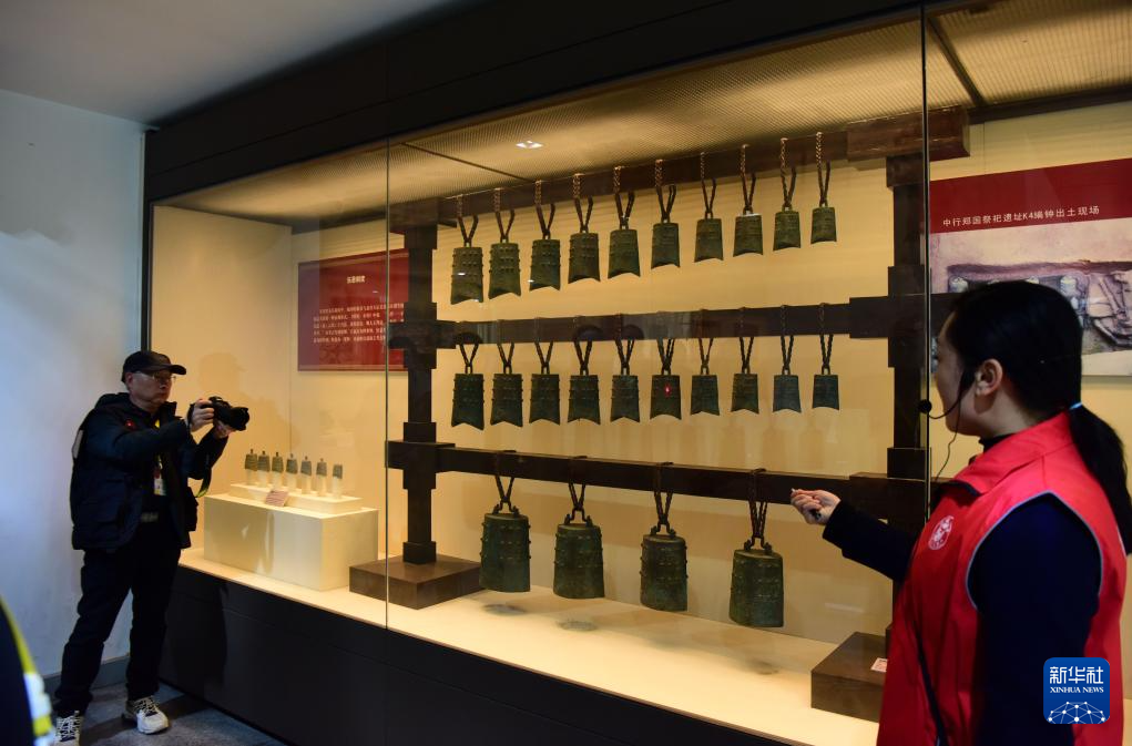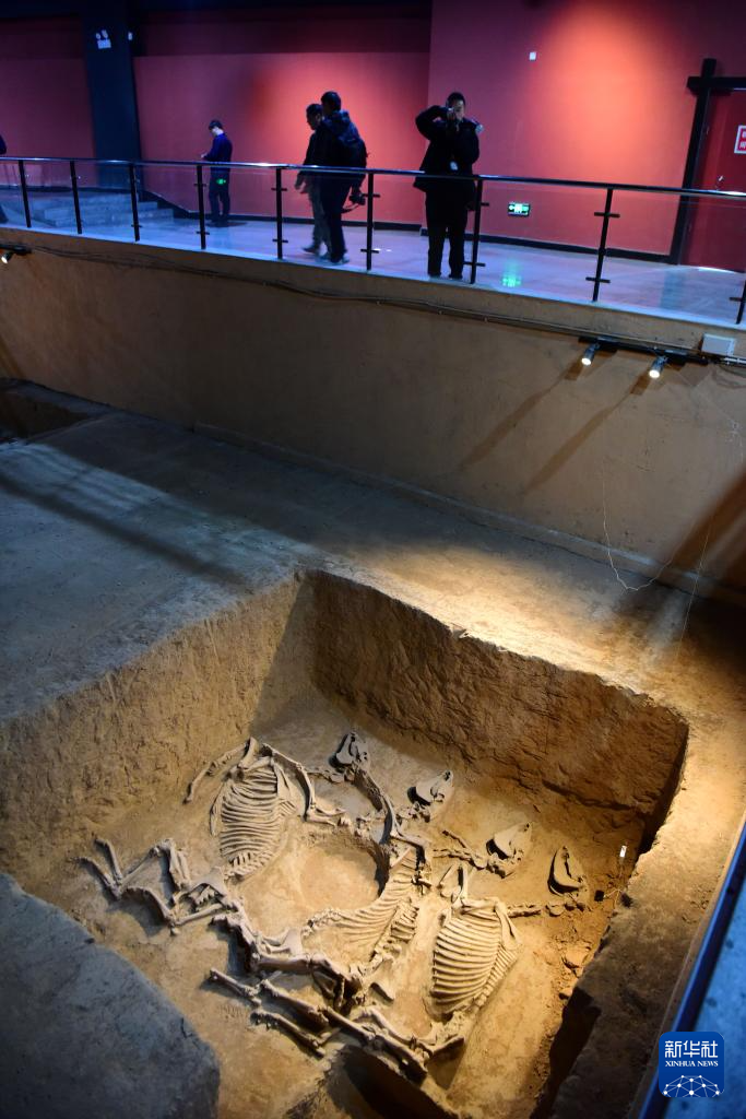 3月12日,游客在新鄭鄭國車馬坑遺址博物館內參觀。