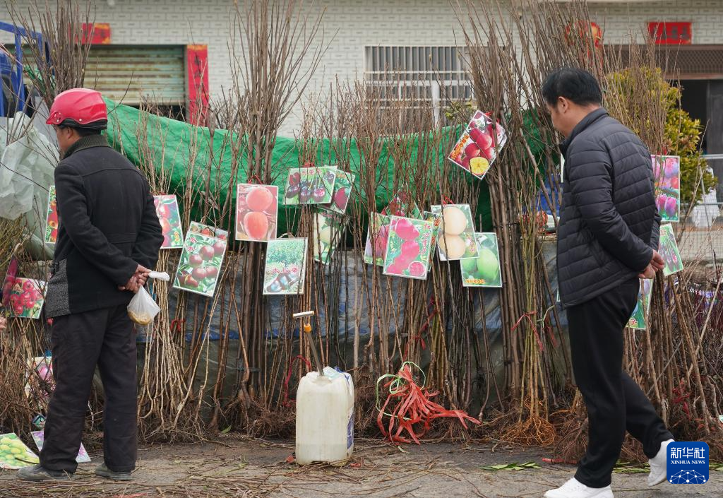 3月13日,附近農民在馬回嶺廟會選購樹苗。
