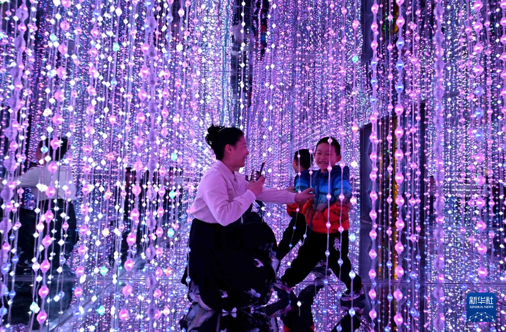 3月17日,觀眾在梵高星空藝術展上參觀體驗。