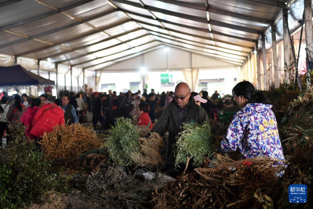 3月19日,消費者在安仁縣中草藥交易集市挑選中草藥。