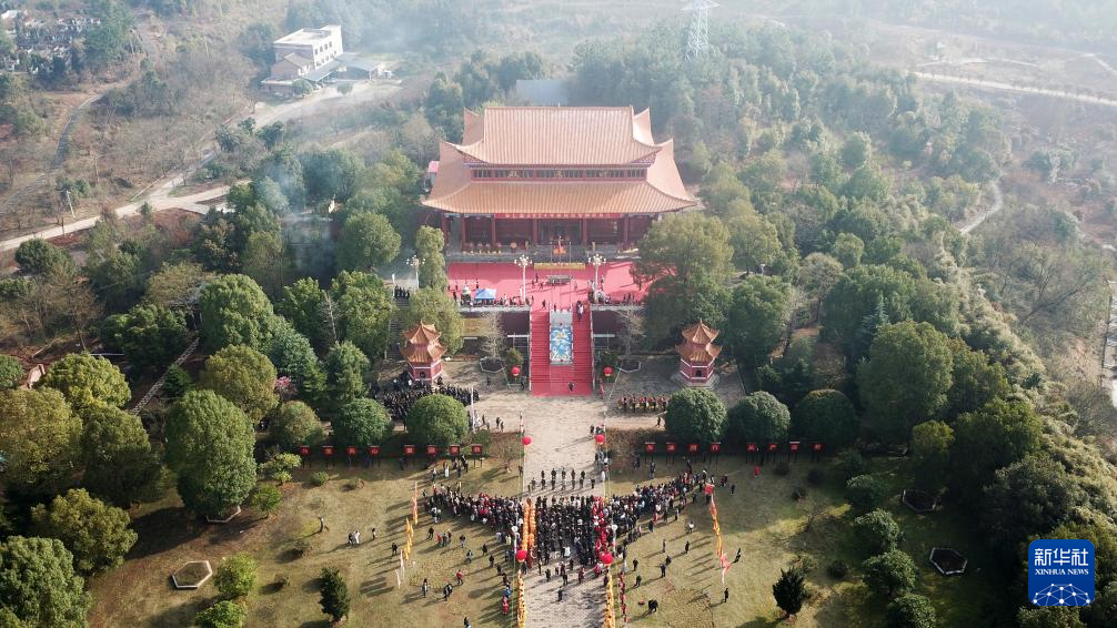 這是3月20日拍攝的安仁縣2024年祭祀炎帝神農典禮現場(無人機照片)。