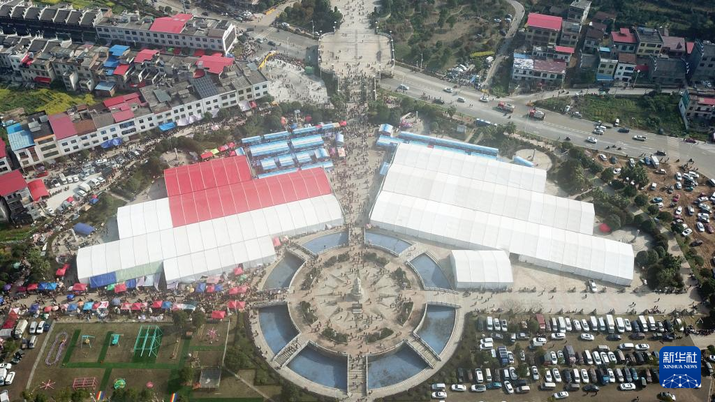這是3月20日在安仁縣拍攝的中草藥和農副產品交易集市(無人機照片)。