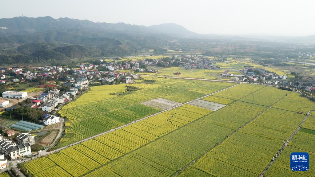 這是3月19日在安仁縣稻田公園拍攝的油菜花田(無人機照片)。