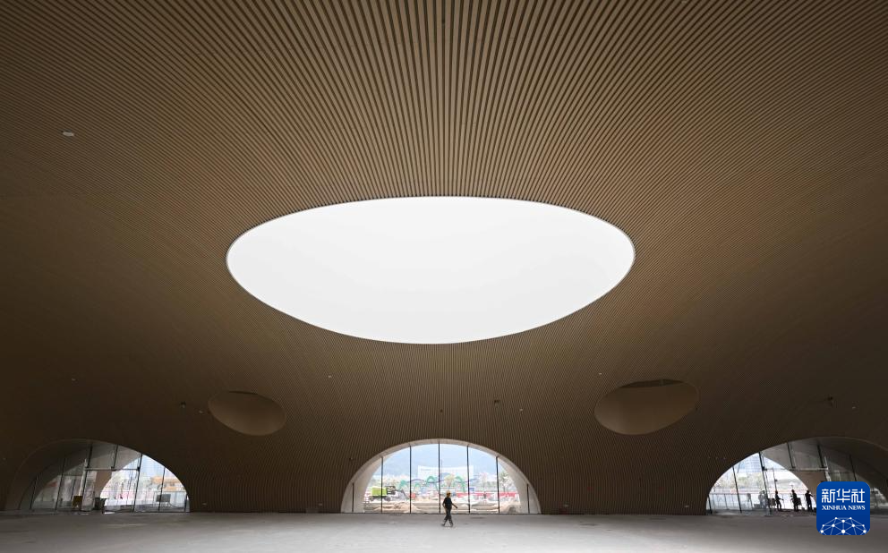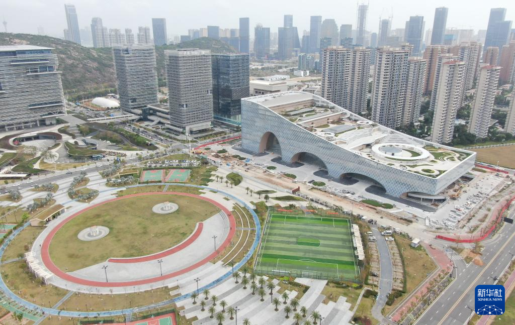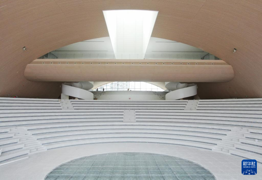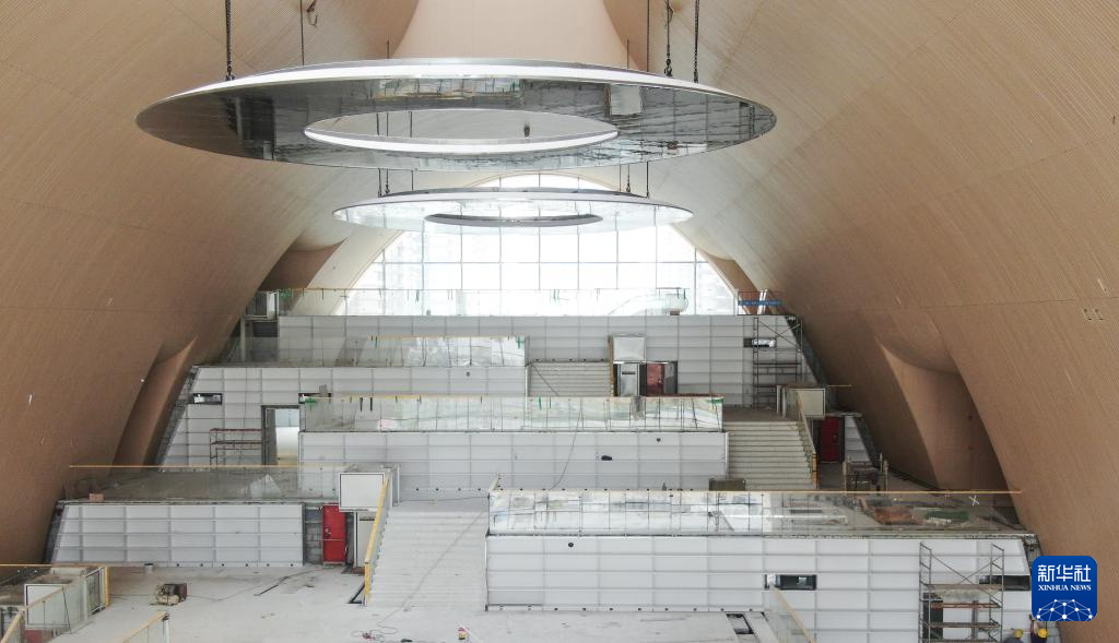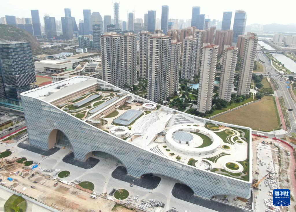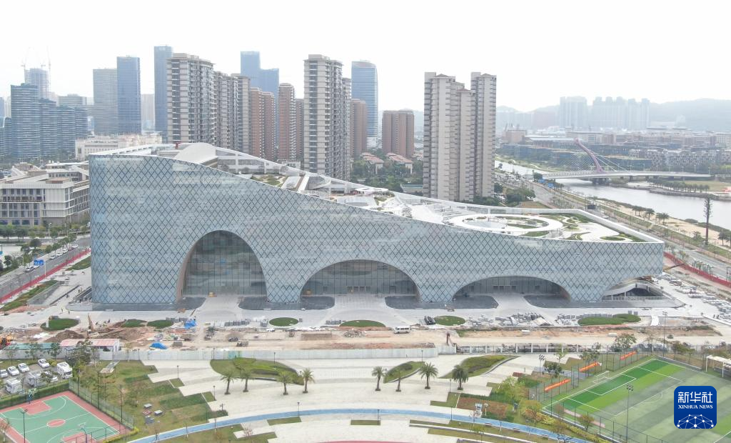 這是3月22日拍攝的橫琴文化藝術中心的圖書閱覽中心,目前在進行最后的安裝調試(無人機照片)。