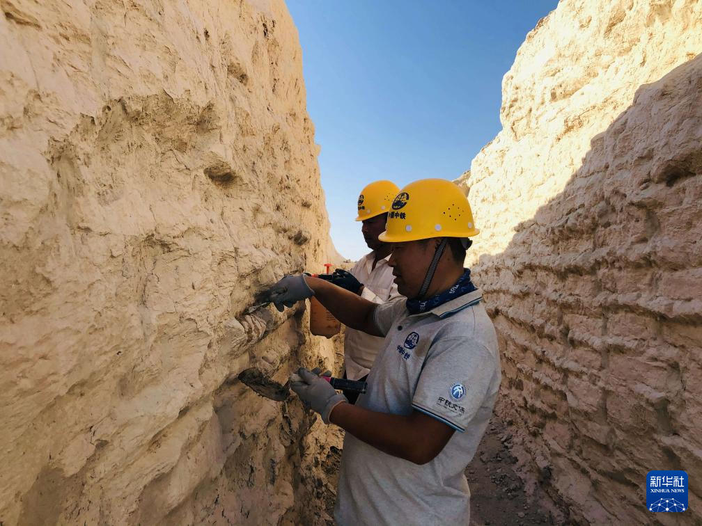 文物保護工作者搶險加固三間房遺址(2020年9月12日攝)。新華社發(中鐵西北科學研究院有限公司供圖)