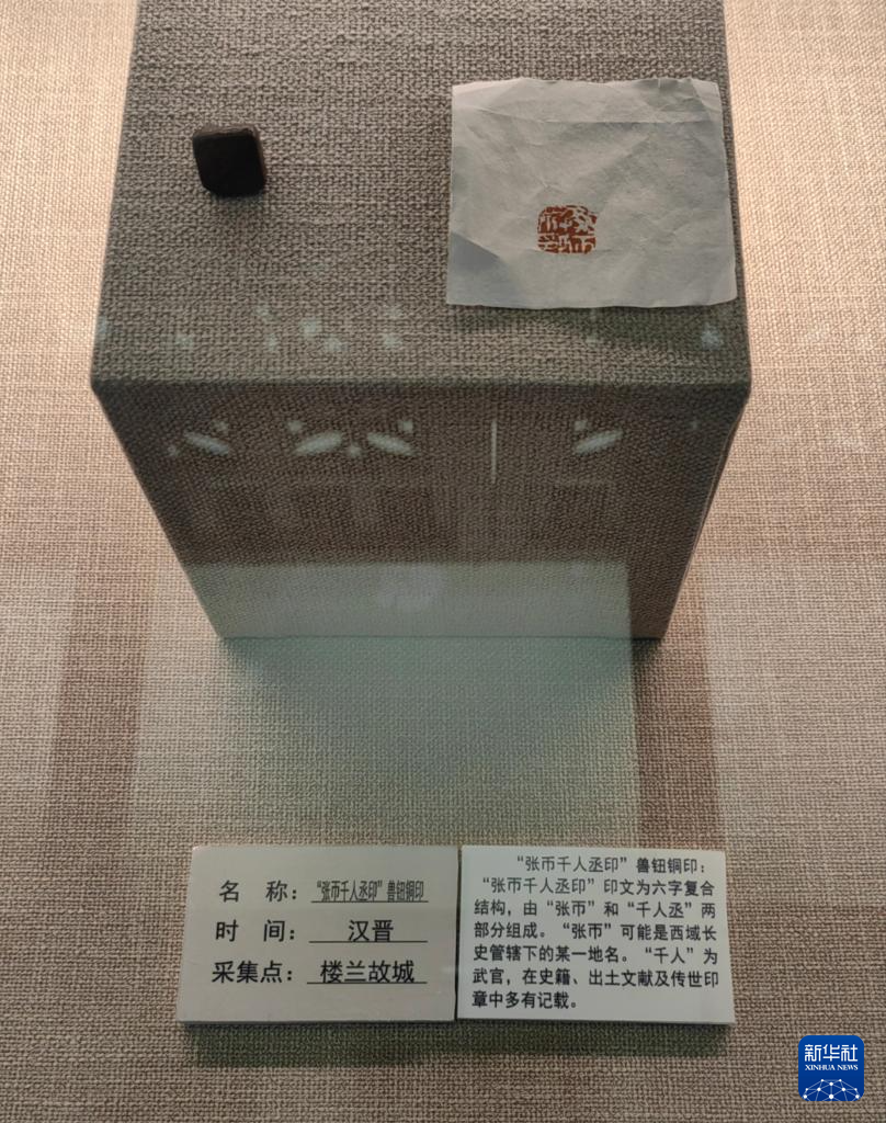 這是在若羌縣樓蘭博物館拍攝的反映魏晉官吏制度的銅印“張帀千人丞印”(2023年11月9日攝)。新華社記者 蔡國棟 攝