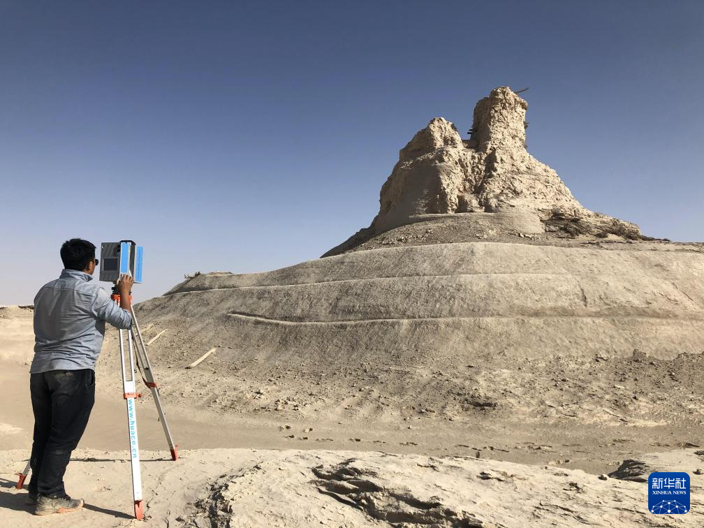 技術專家使用三維激光掃描技術為佛塔遺址建立數字化檔案(2020年10月20日攝)。新華社發(中鐵西北科學研究院有限公司供圖)