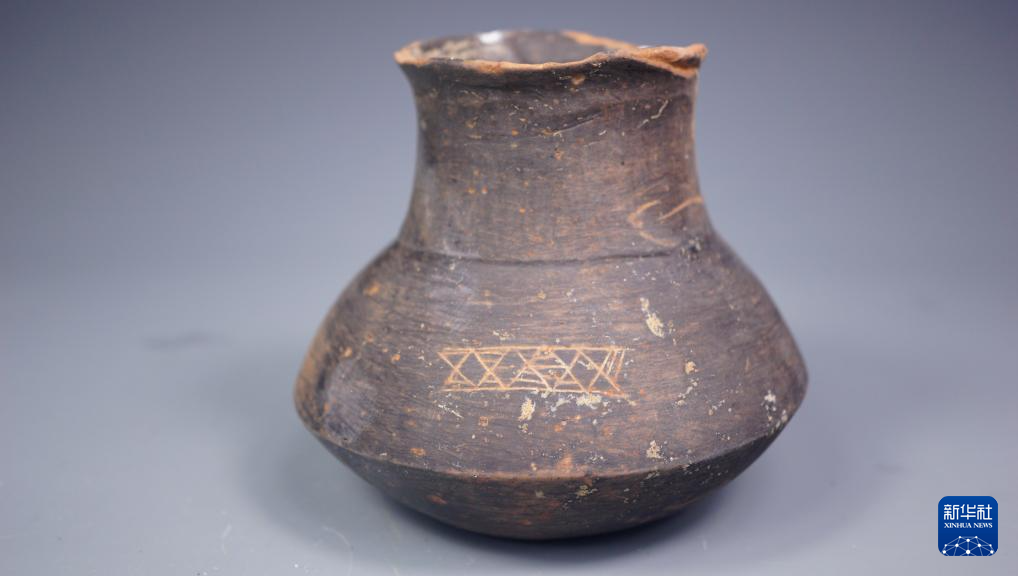 圖為磨盤山遺址出土的崧澤文化時期帶有幾何刻劃的壺。