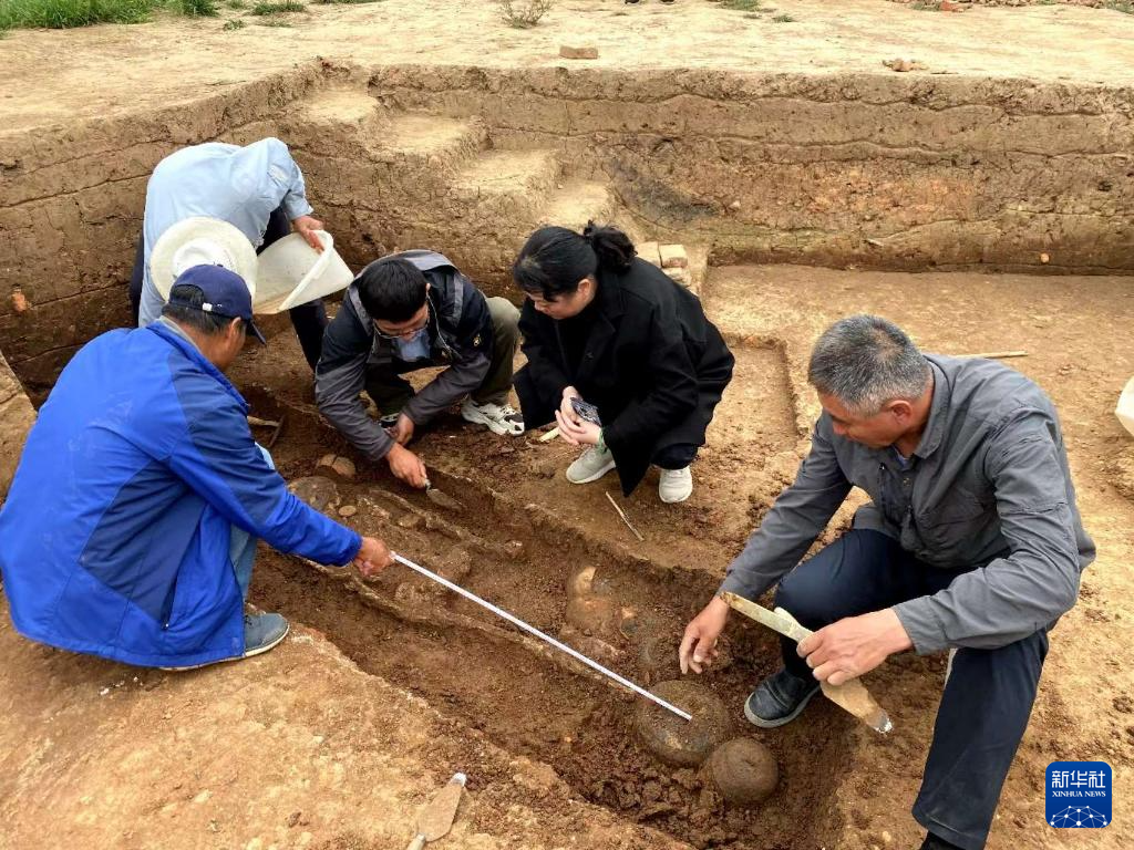 2023年4月22日,考古人員在磨盤山遺址進行墓葬清理。