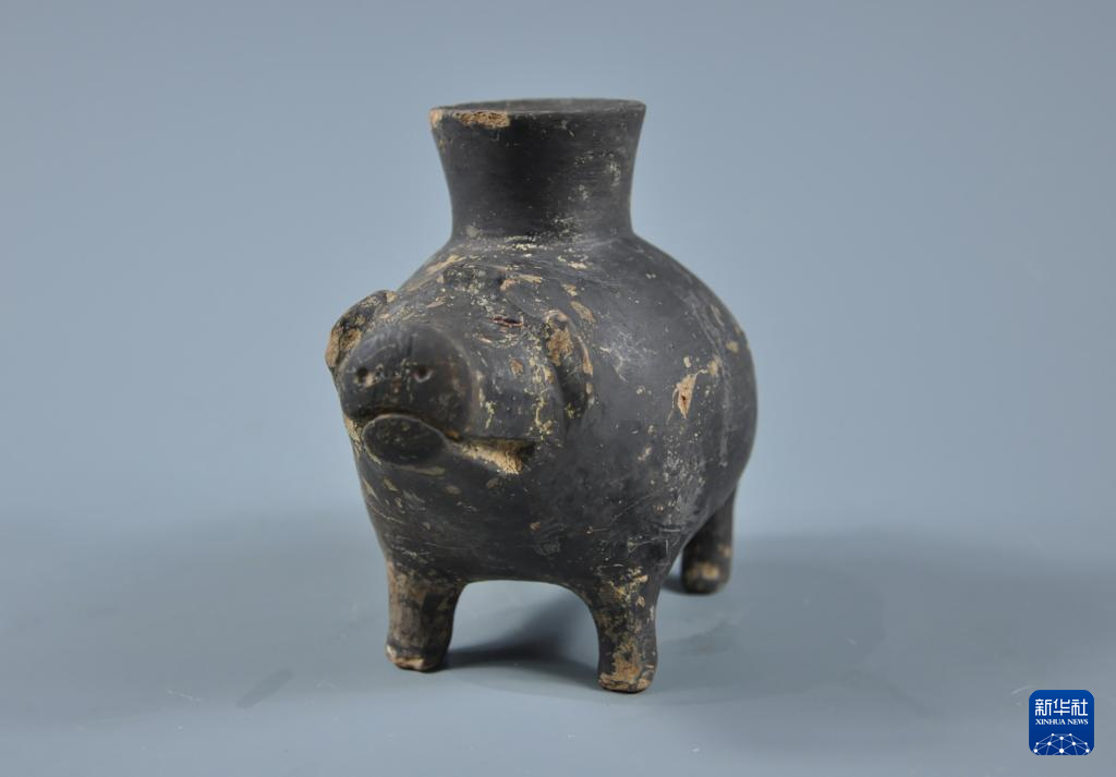 圖為磨盤山遺址崧澤文化陶豬尊。