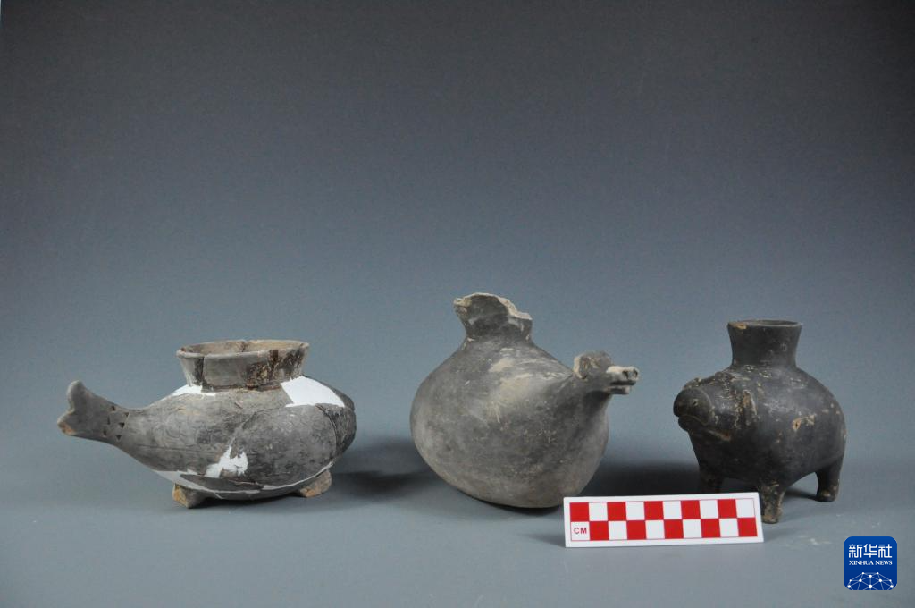 圖為磨盤山遺址出土的崧澤文化時期仿生型器物魚尊、牛尊和豬尊。