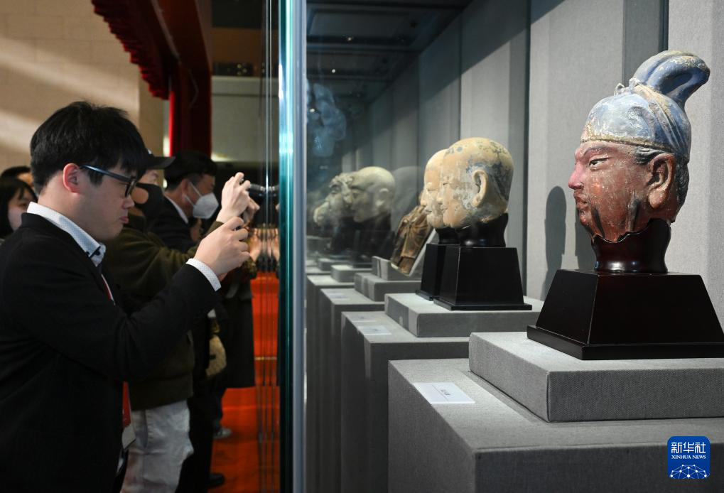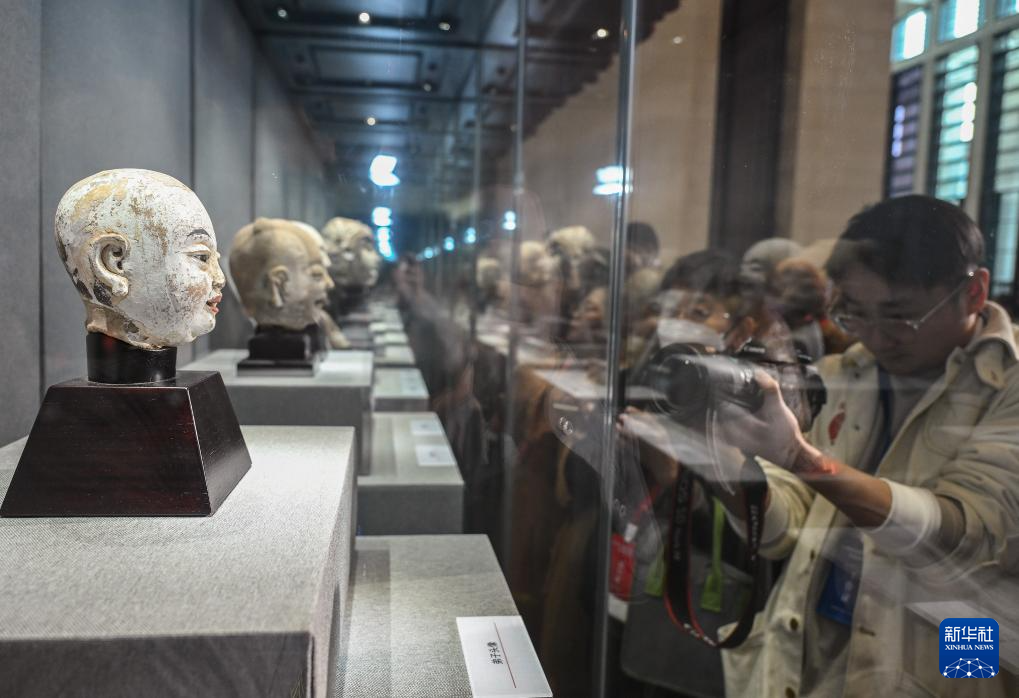 3月25日,由臺灣中華人間佛教聯合總會捐贈的文物(部分)在儀式現場展示。新華社記者 李賀 攝