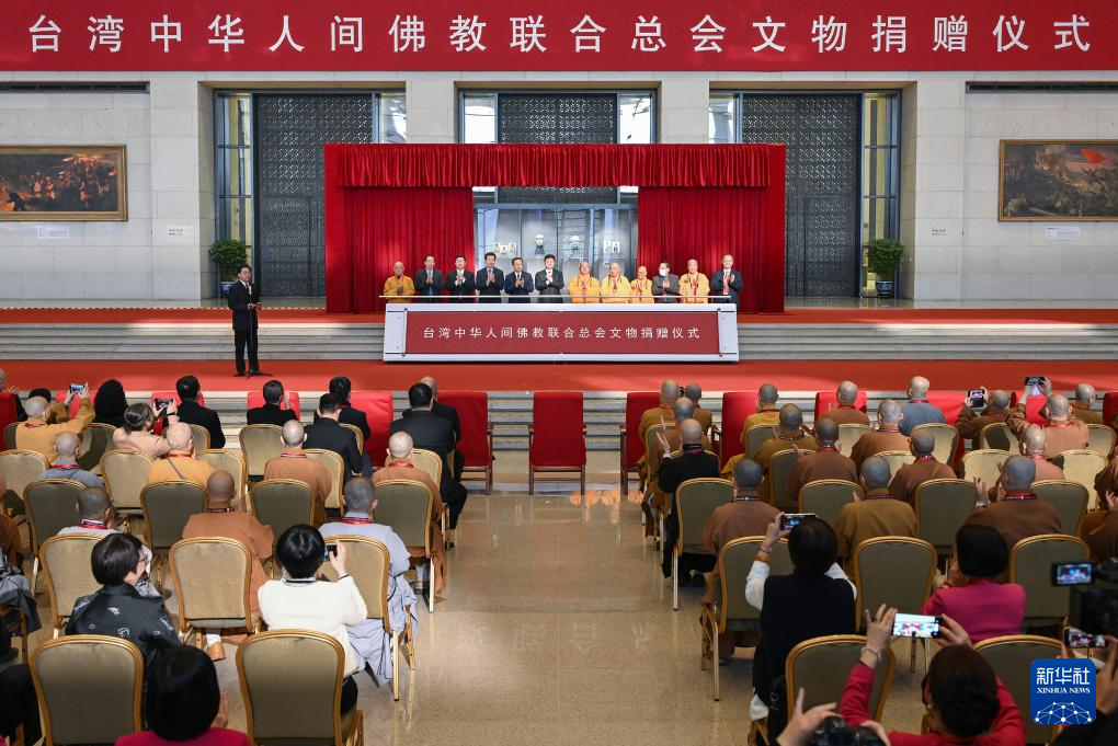中共中央臺辦、國務院臺辦主任宋濤,文化和旅游部部長孫業禮,臺灣中華人間佛教聯合總會主席、佛光山寺住持心保法師等兩岸嘉賓在儀式上致辭并共同為文物揭幕。宋濤表示,多年來,臺灣各界同胞為保護中華文物、傳承弘揚中華文化,做了大量工作,付出了艱辛努力,寫下了感人篇章。兩岸同胞都是中國人,光彩奪目的中華文化是我們共同的底色、共同的驕傲、共同的財富、共同的靈魂。兩岸同胞要共同把握歷史大勢,堅守民族大義,堅定反“獨”促統,團結奮進,共同推進祖國和平統一進程,攜手開創中華民族偉大復興的美好未來。