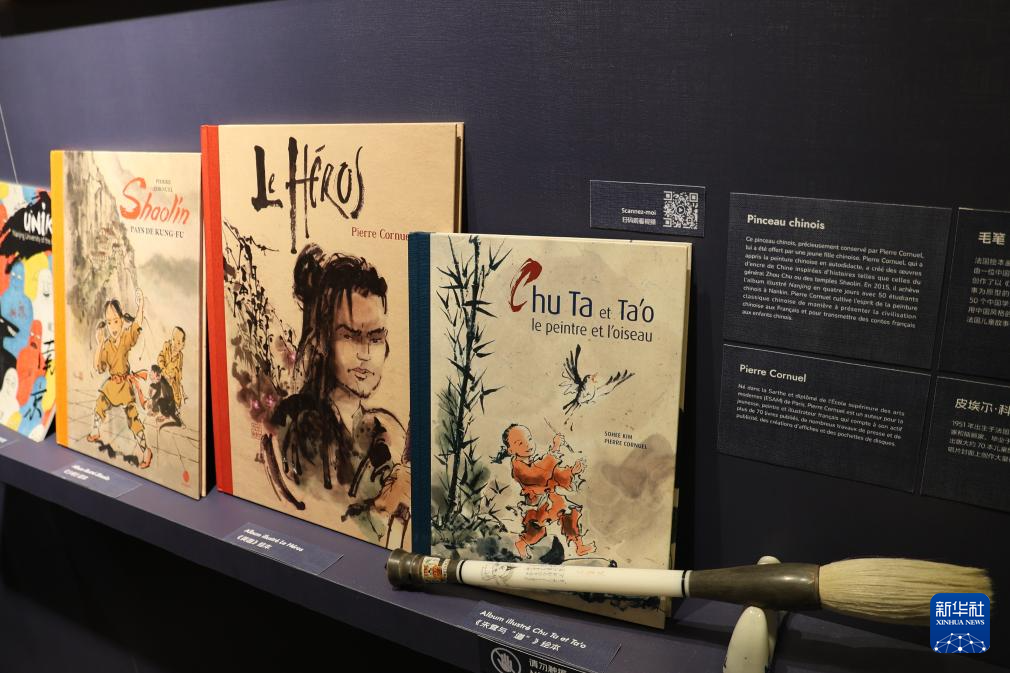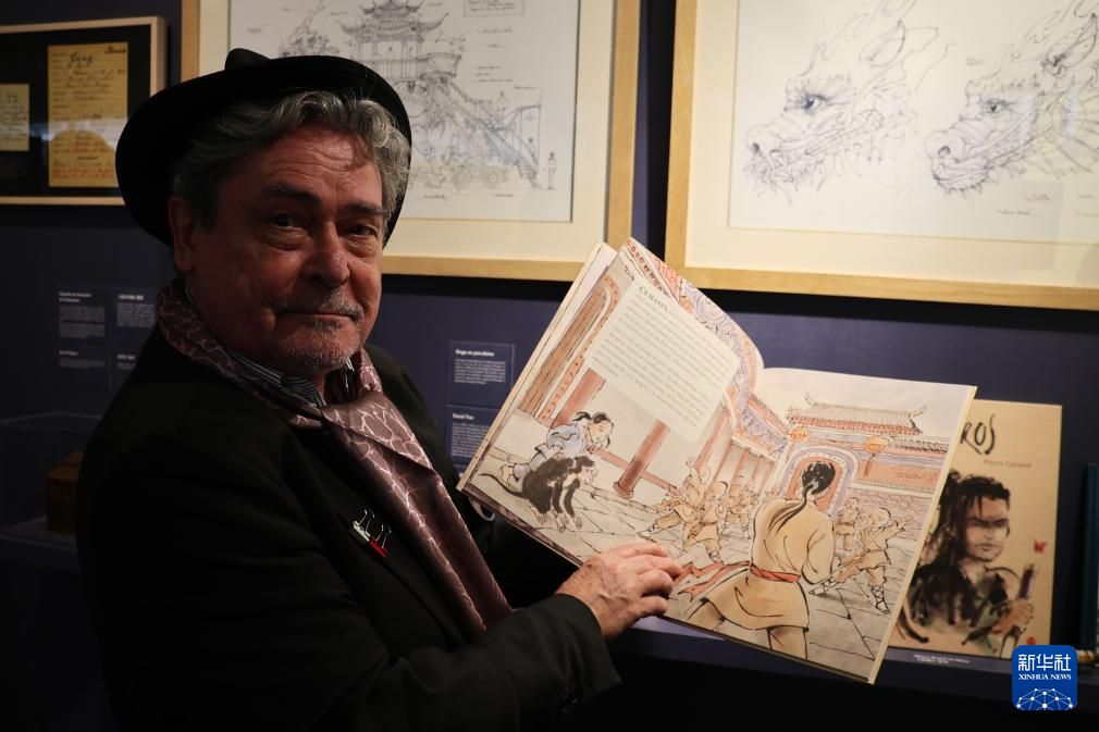 3月23日,在法國巴黎舉辦的“甲子情深——中法百姓故事展”開幕式上,法國畫家皮埃爾·科尼埃爾展示其創作的“中國風”法語繪本。