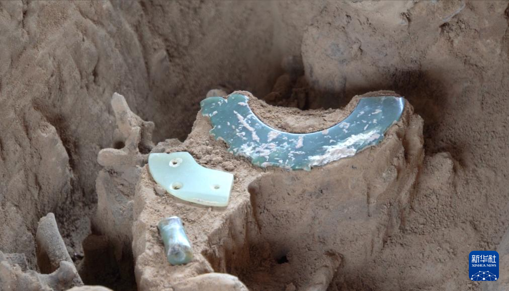 這是鄭州商都書院街墓地M24墓葬中出土的部分玉器(2022年7月15日攝)。