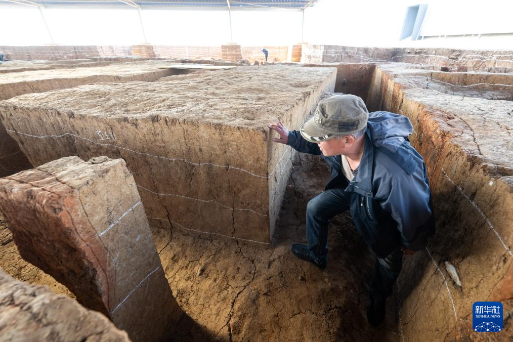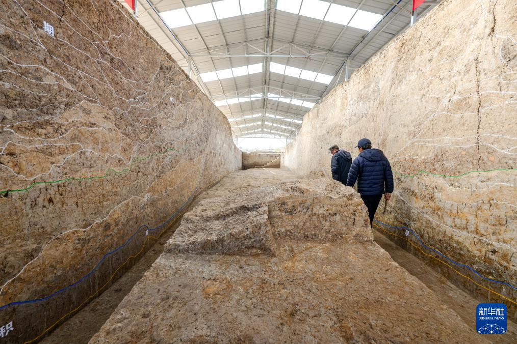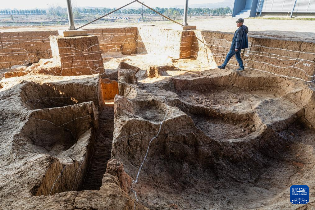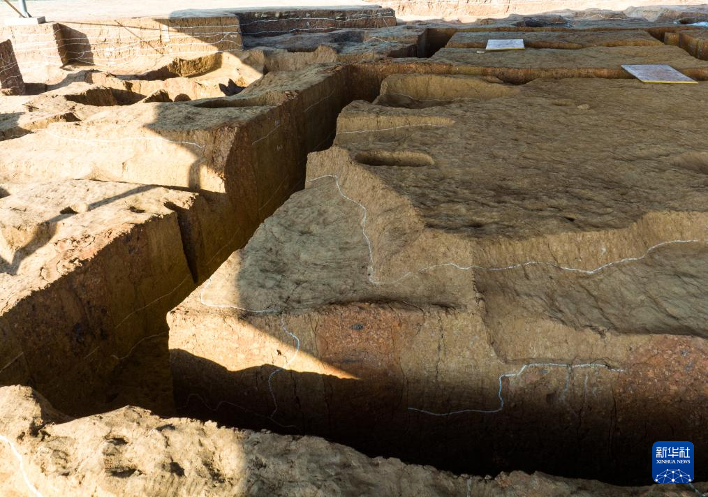 2023年12月4日拍攝的湖北荊門屈家嶺遺址F38發現的磉墩。