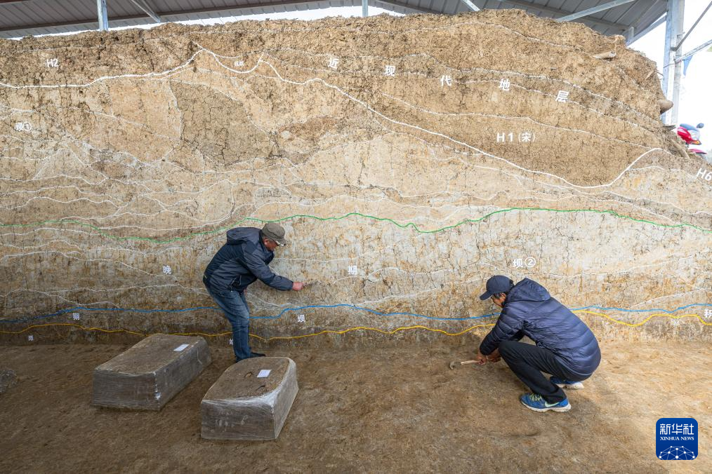 2023年12月4日,考古人員在湖北荊門屈家嶺遺址F38現場進行考古工作。