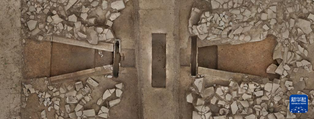 這是甘肅省隴南市禮縣四角坪遺址的半地穴式空間(2023年11月20日攝,無人機照片)。