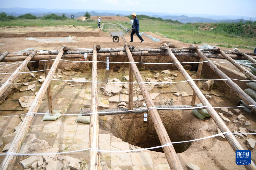 這是2022年6月10日拍攝的甘肅省隴南市禮縣四角坪遺址考古發掘現場。