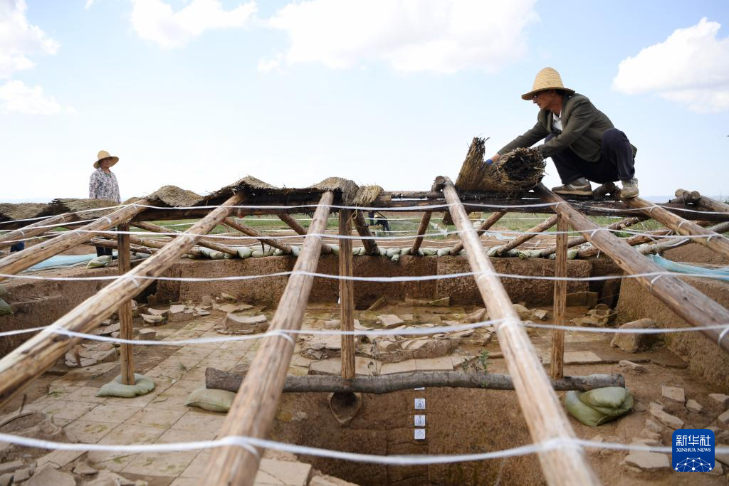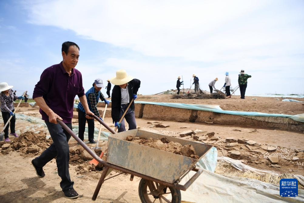 工作人員在甘肅省隴南市禮縣四角坪遺址考古發掘現場工作(2022年6月10日攝)。