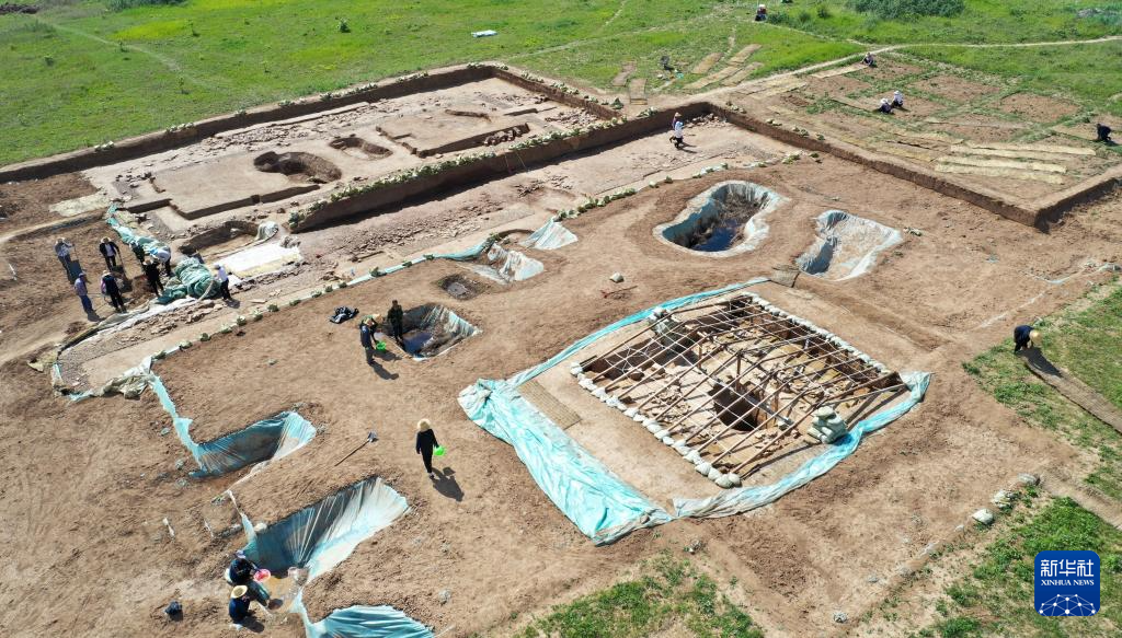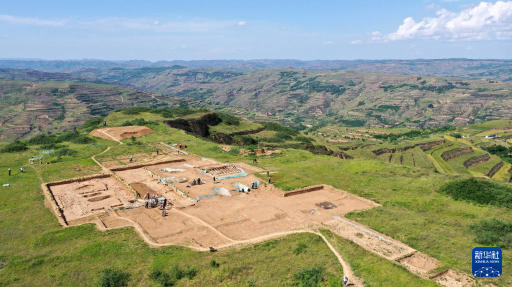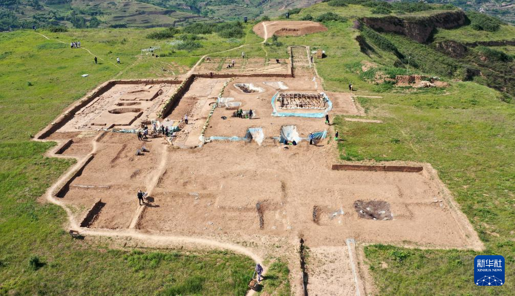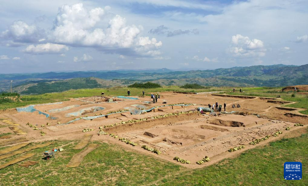 這是2022年6月10日拍攝的甘肅省隴南市禮縣四角坪遺址考古發掘現場(無人機照片)。