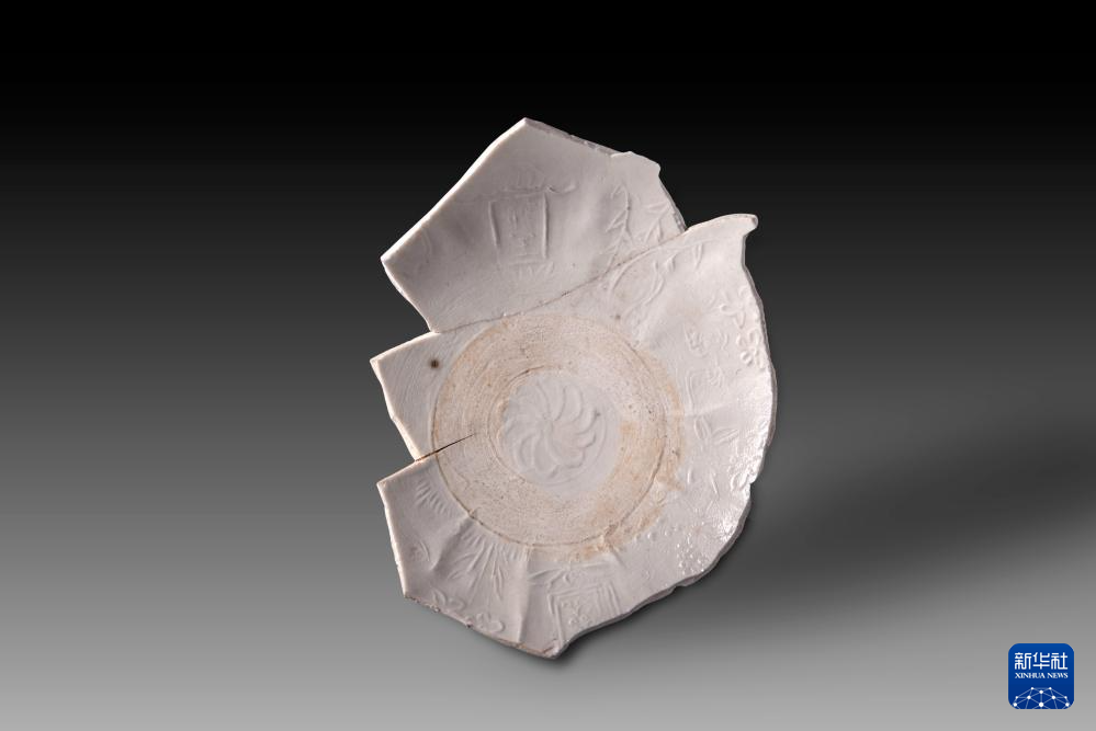 霍州窯北宋后期開始燒造,金代達到成熟,細白瓷為主流特色產品。胎體潔白堅致,器類小巧多樣,釉層稀薄光亮,釉色潔凈明快。內部有細凸線紋印花裝飾,水波禽鳥、纏枝花卉、蓮花童子、兔子等動物紋,活潑靈動,富有生活情趣。紋飾間可見“郭窯瓷器”“廉家”“郭七”“閆大”“李一造”等不同姓氏的標記,反映出以作坊為單位的窯業生產經濟形態和強烈的商標意識。