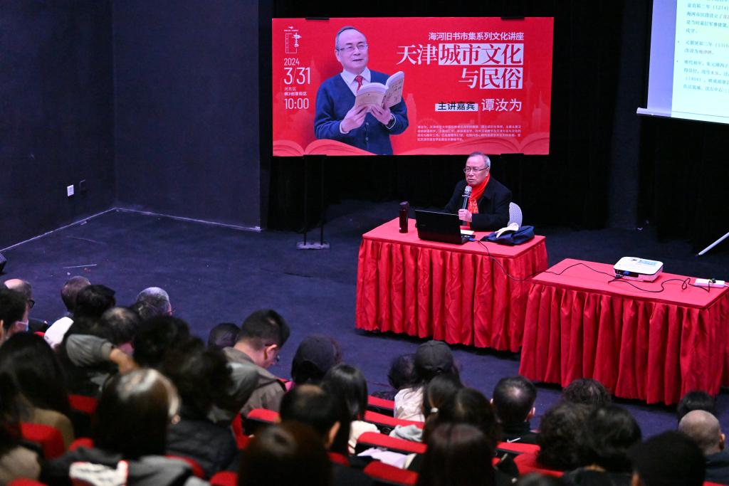 3月31日,天津師范大學教授譚汝(右)在天津棉3創意街區內辦講座。