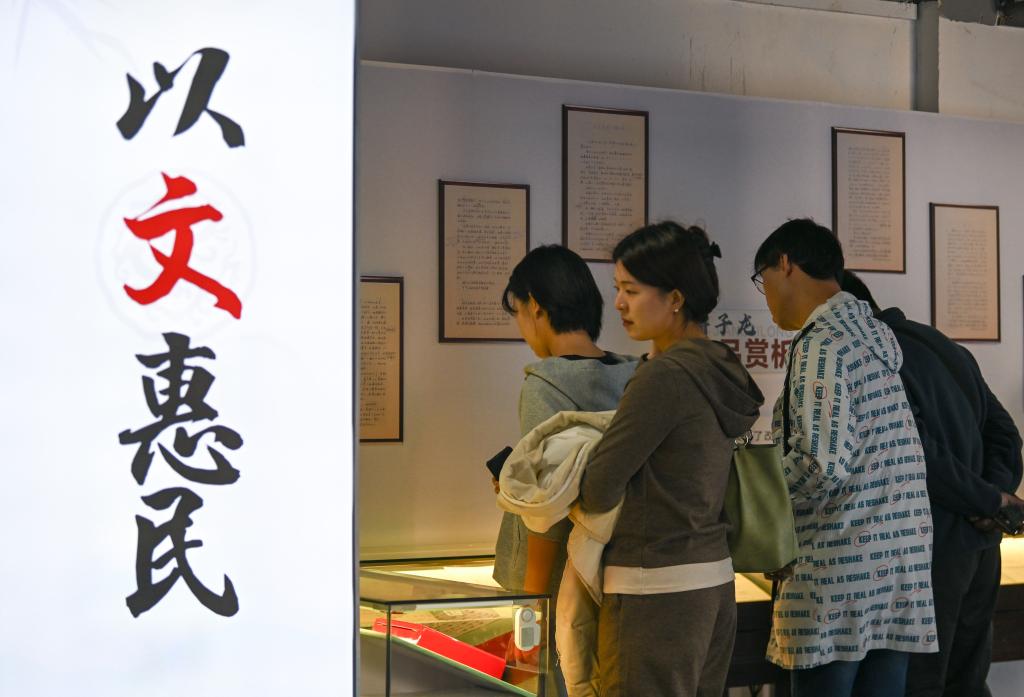 3月31日,在天津棉3創意街區,市民在參觀文學藏品展。
