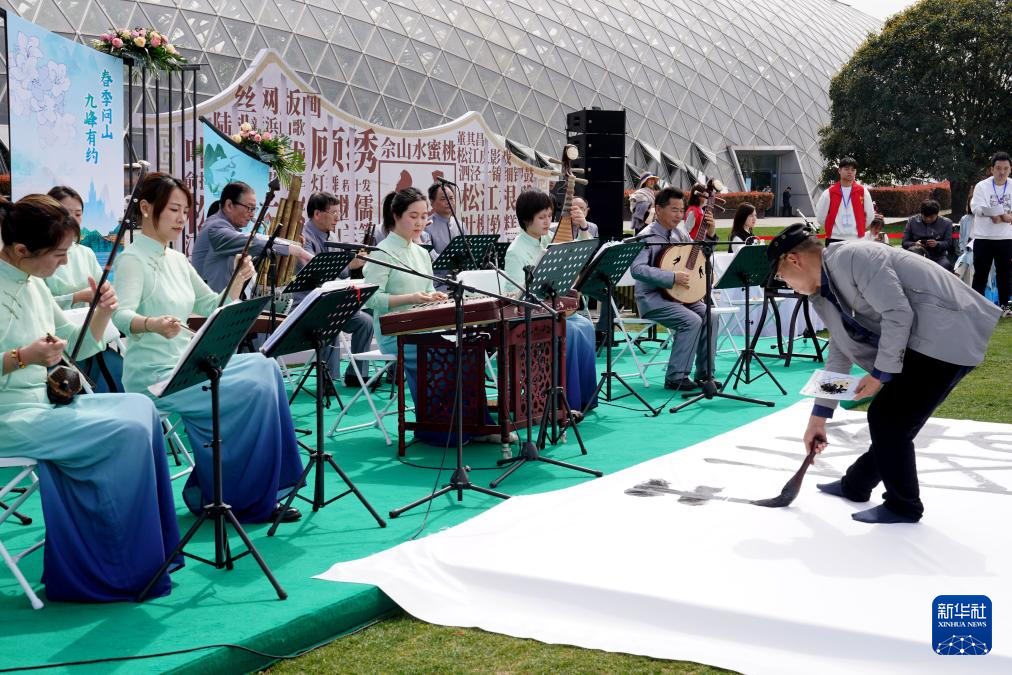3月30日,江南絲竹專場音樂會與書法家的地書表演在辰山植物園的“城市美育日”活動現場上演。