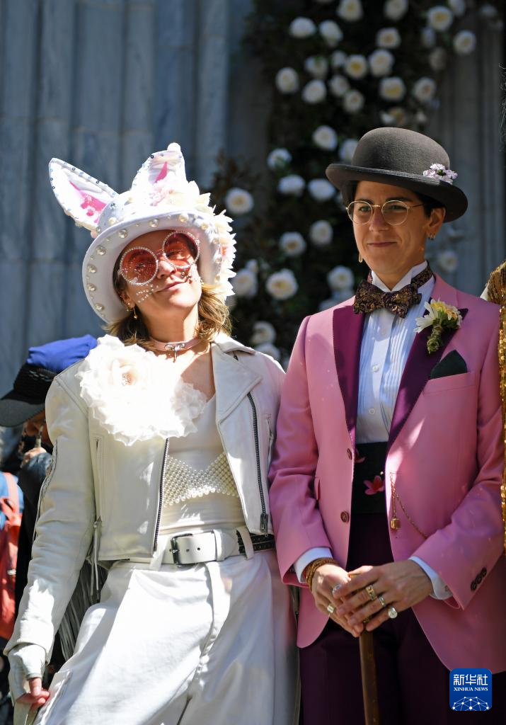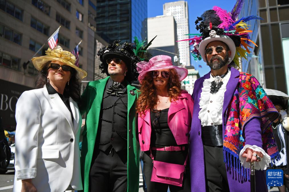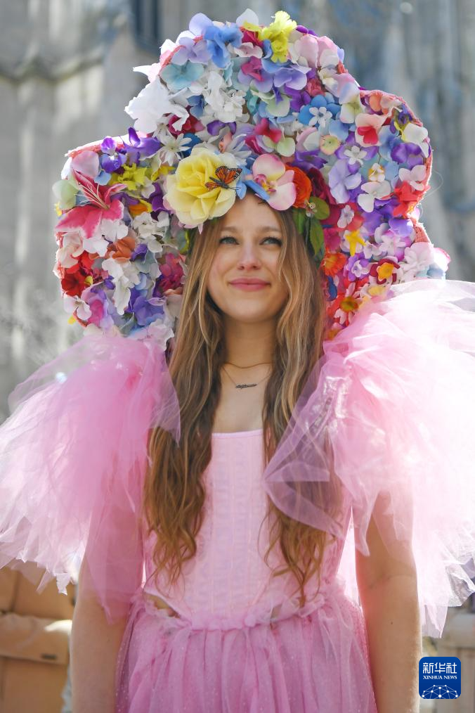 當日為西方傳統節日復活節,人們頭戴花帽,在紐約第五大道參加一年一度的復活節游行。