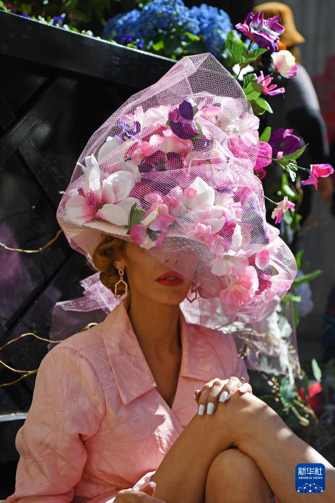 3月31日,一名女子在美國紐約參加復活節花帽游行。