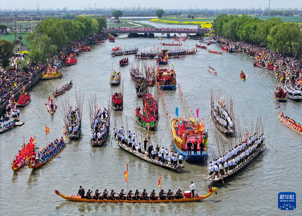 當日是清明節,江蘇省興化市舉行一年一度的茅山會船盛會,選手齊聚茅山西大河,參加競技和表演。茅山會船于2014年被列入國家級非物質文化遺產名錄。