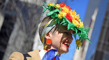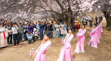 4月4日,參加公祭軒轅黃帝典禮的演員步入黃陵縣橋山祭祀廣場。