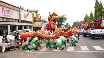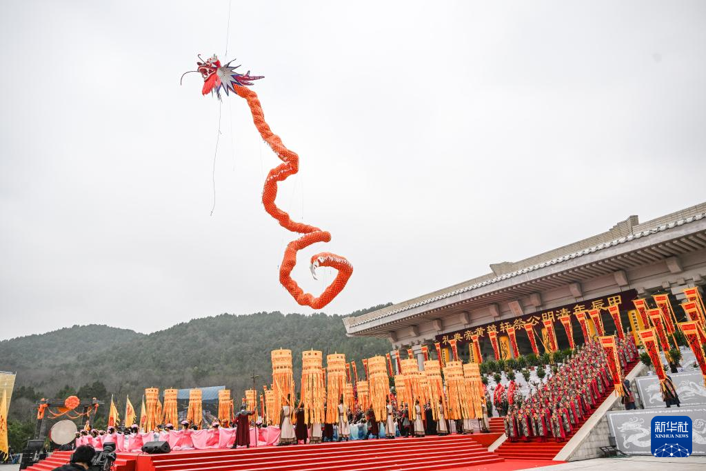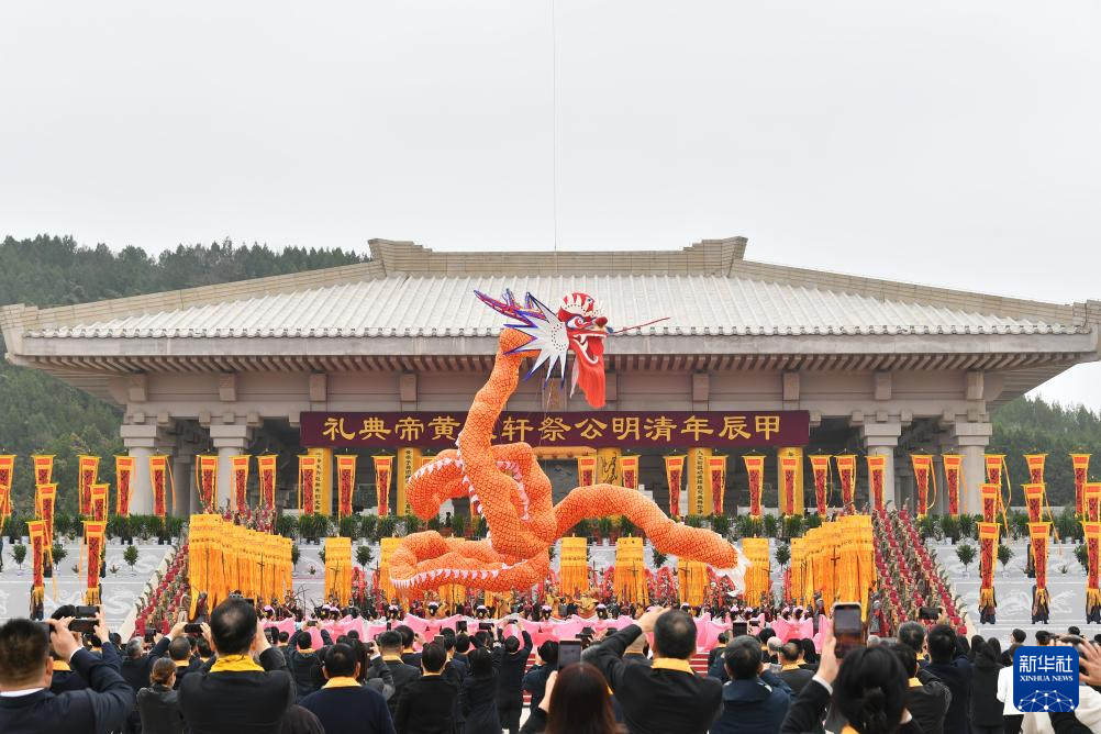 4月4日,在公祭軒轅黃帝典禮上,“金色飛龍”從祭臺中心盤旋騰躍而起。
