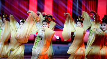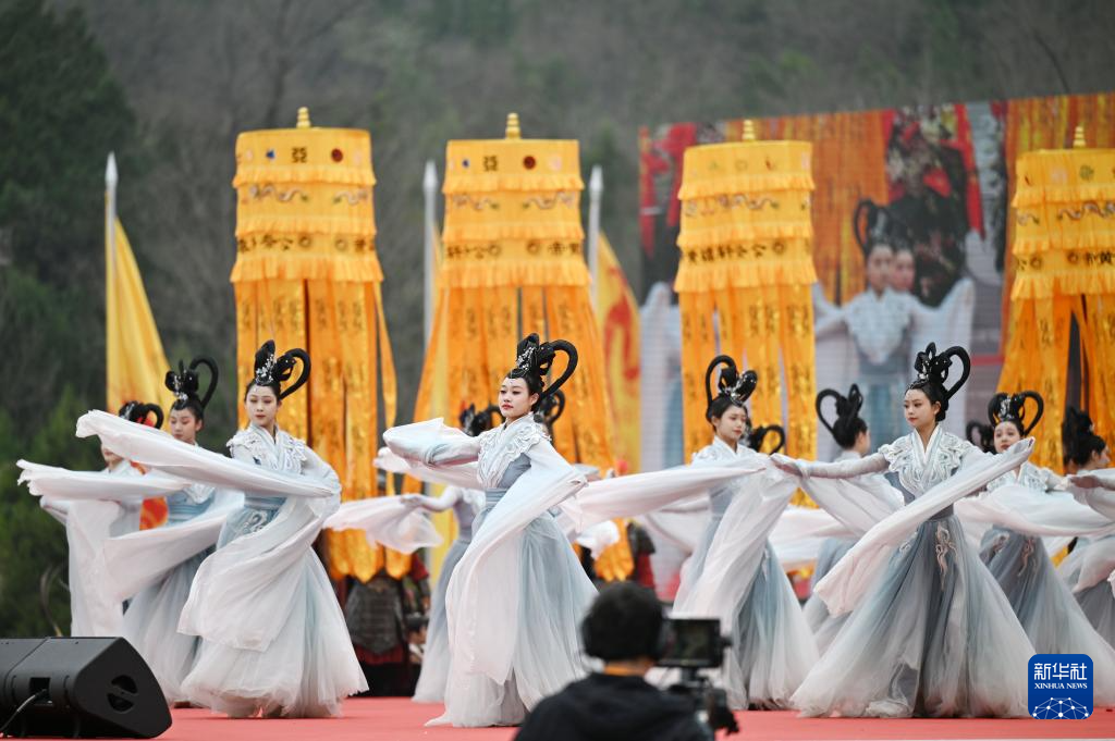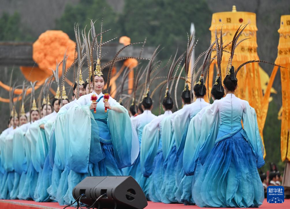 4月4日,演員在公祭軒轅黃帝典禮上的樂舞告祭環節表演。