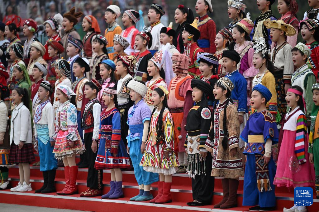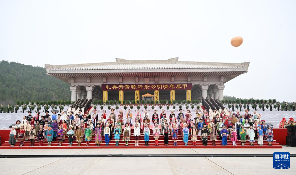 4月4日,身穿民族服飾的兒童在公祭軒轅黃帝典禮上合唱《黃帝頌》。