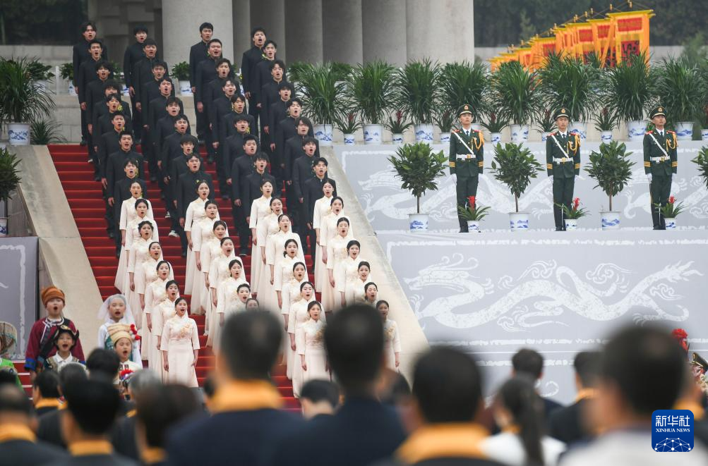 4月4日,演員在公祭軒轅黃帝典禮上演唱歌曲《黃帝頌》。