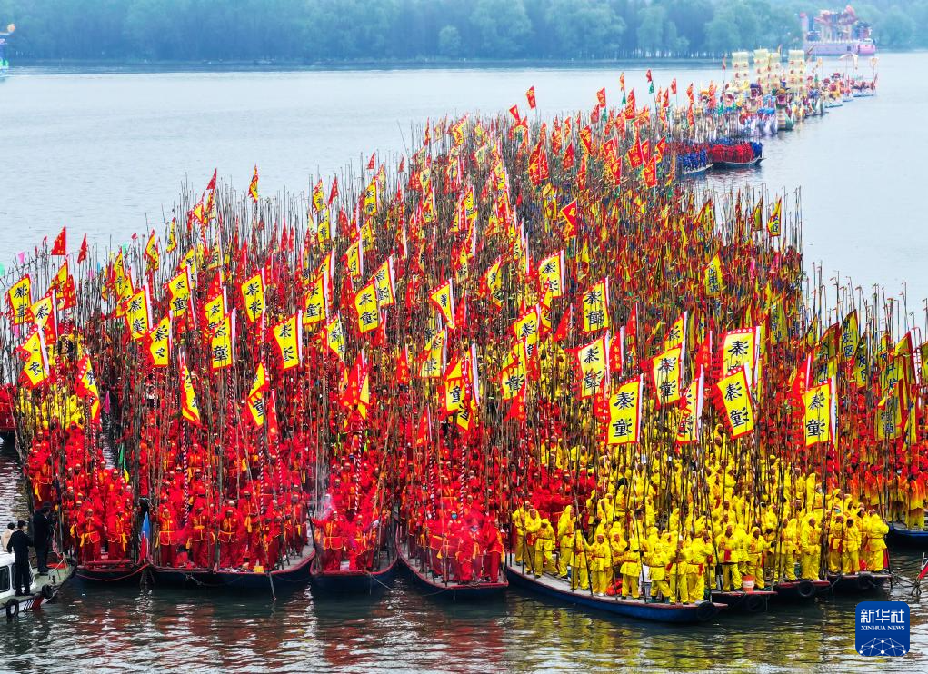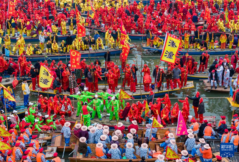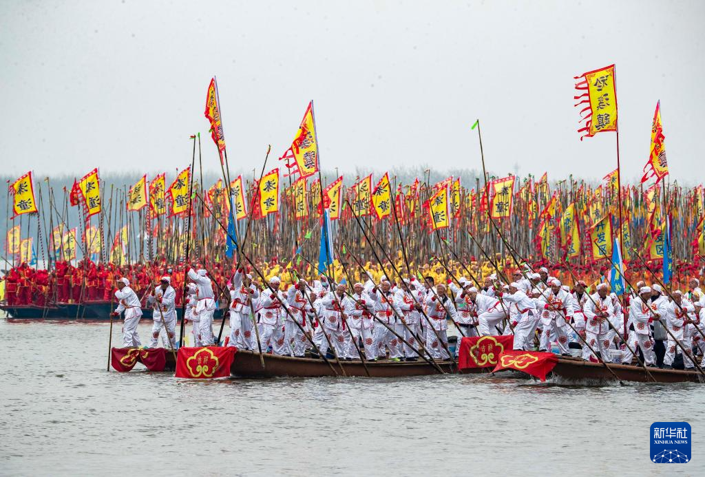 當日,2024年泰州姜堰溱潼會船在江蘇省泰州市姜堰區溱湖國家濕地公園開幕,數百條各式各樣的船只和上萬名會船選手云集溱湖,飛篙走槳,奮勇爭先,呈現“千篙萬槳鬧溱湖 百舸爭流逐春潮”的壯觀場景,演繹歷久彌新的民俗畫卷。