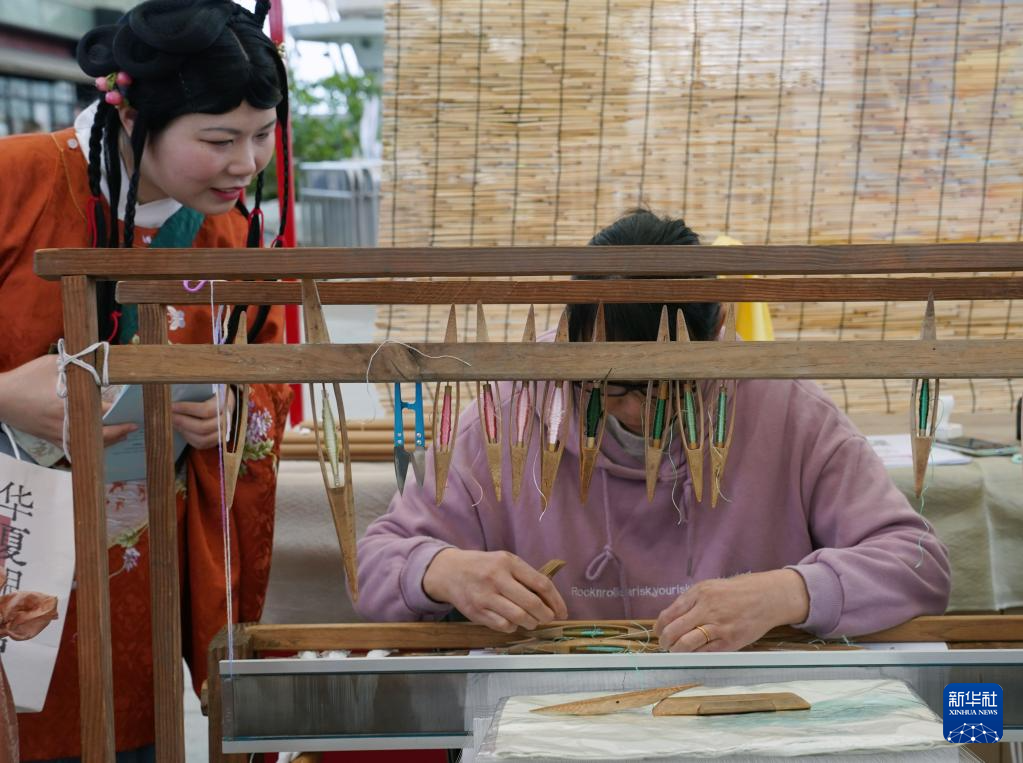 4月11日拍攝的國風市集上的緙絲織造工藝展示。