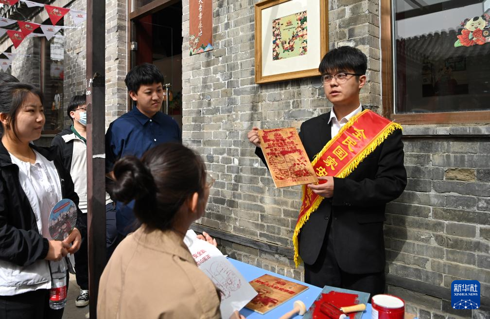 4月15日,小學生在國家安全年畫娃娃藝術展上自己動手印刷了一張年畫。