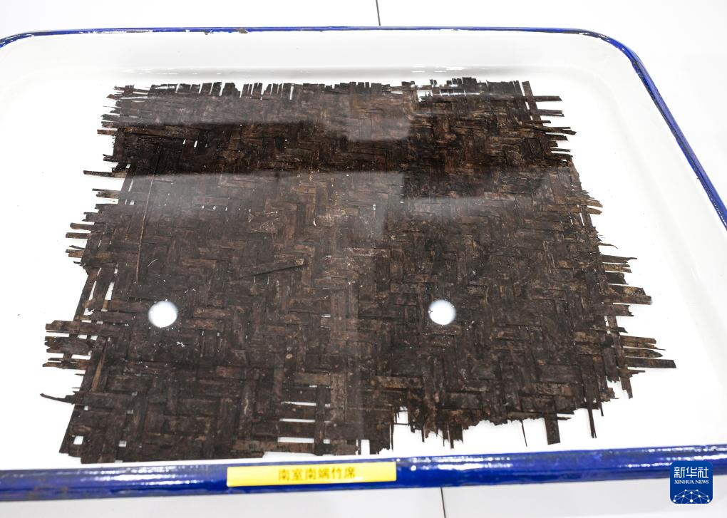 這是4月16日在武王墩墓考古實驗室內拍攝的出土竹席。