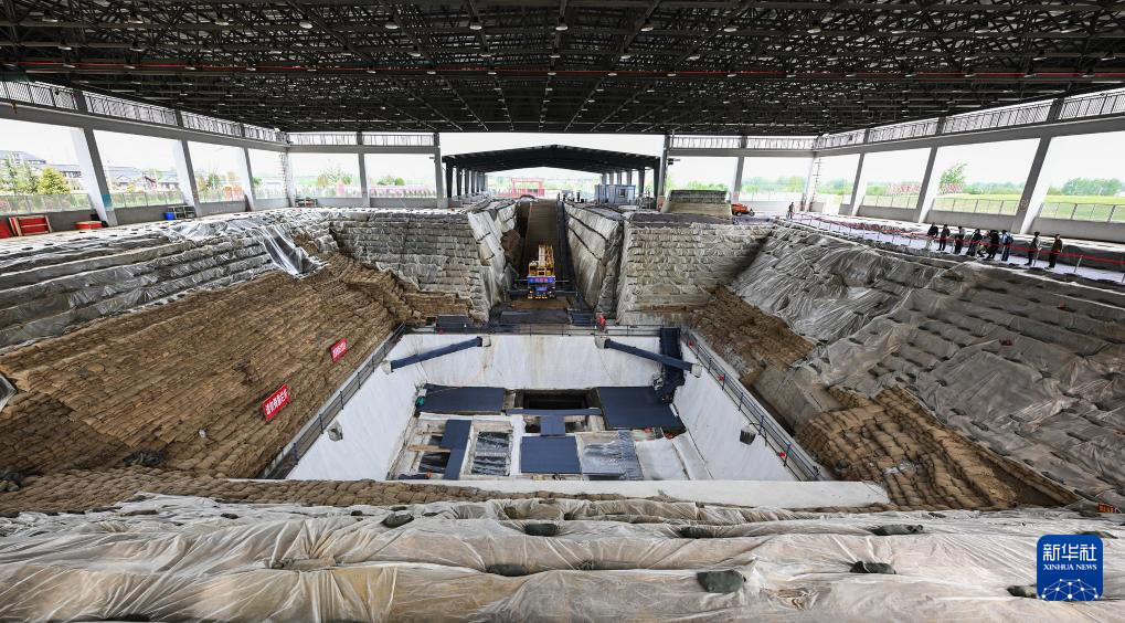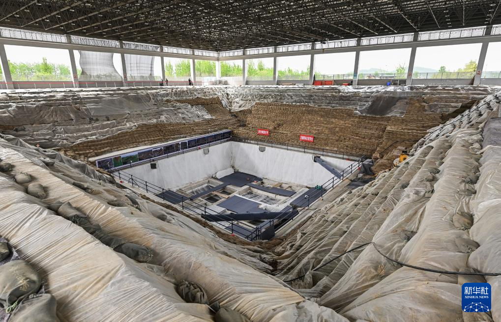 4月16日拍攝的武王墩一號大墓發掘現場。