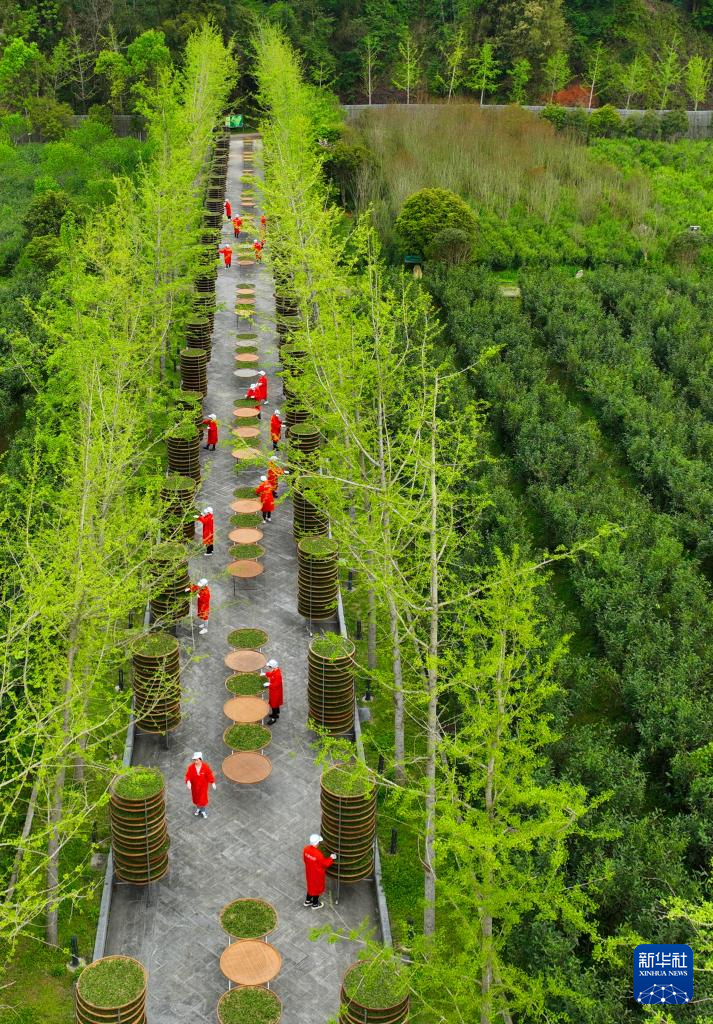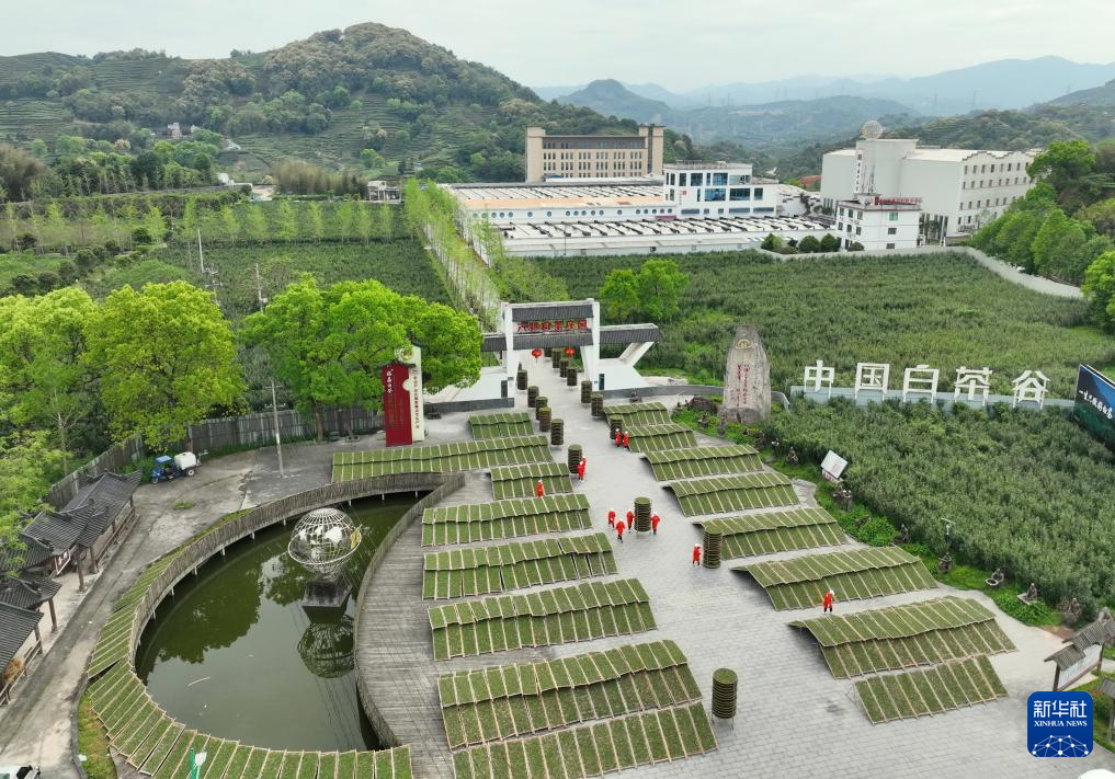 4月10日拍攝的福鼎市點頭鎮大坪村六妙白茶莊園茶旅結合旅游休閑項目“中國白茶谷”一角(無人機照片)。