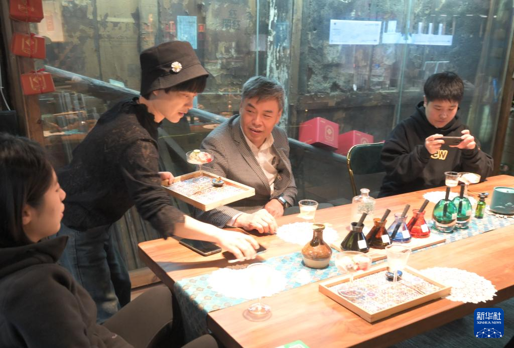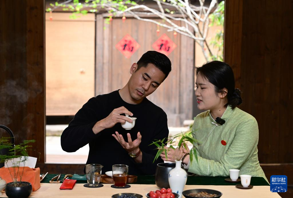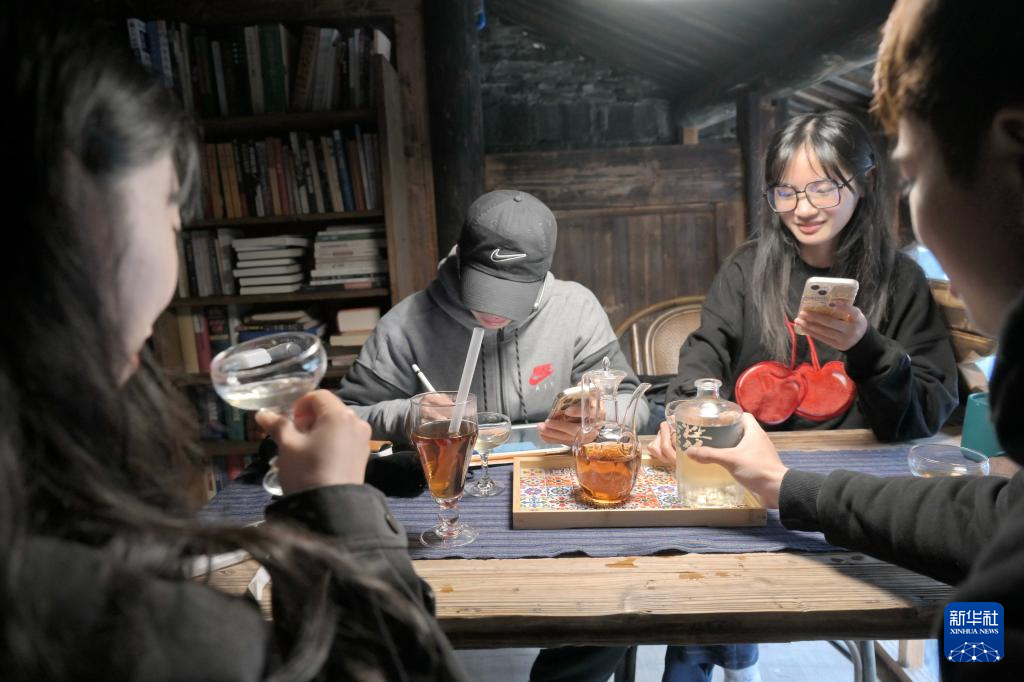 4月9日,年輕消費者在福鼎白琳老街“同順泰”茶號品嘗新式茶飲料。