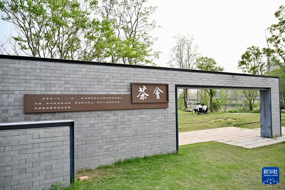 4月14日,福州晉安湖公園“茶會”文化墻旁,市民在戶外休閑。