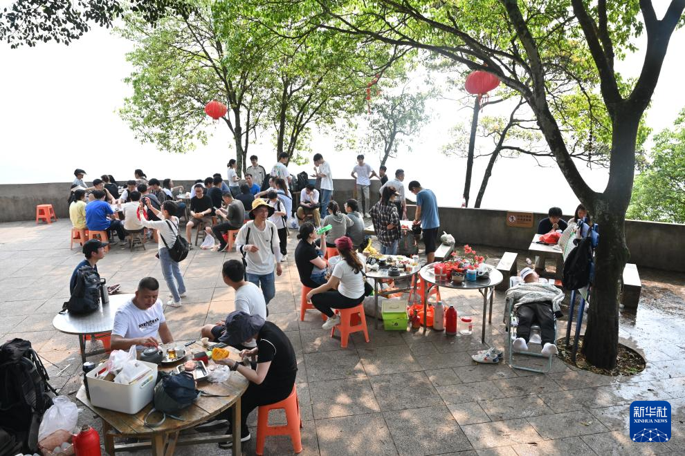 4月14日,在福州鼓山白云洞景點,市民在戶外飲茶休閑。