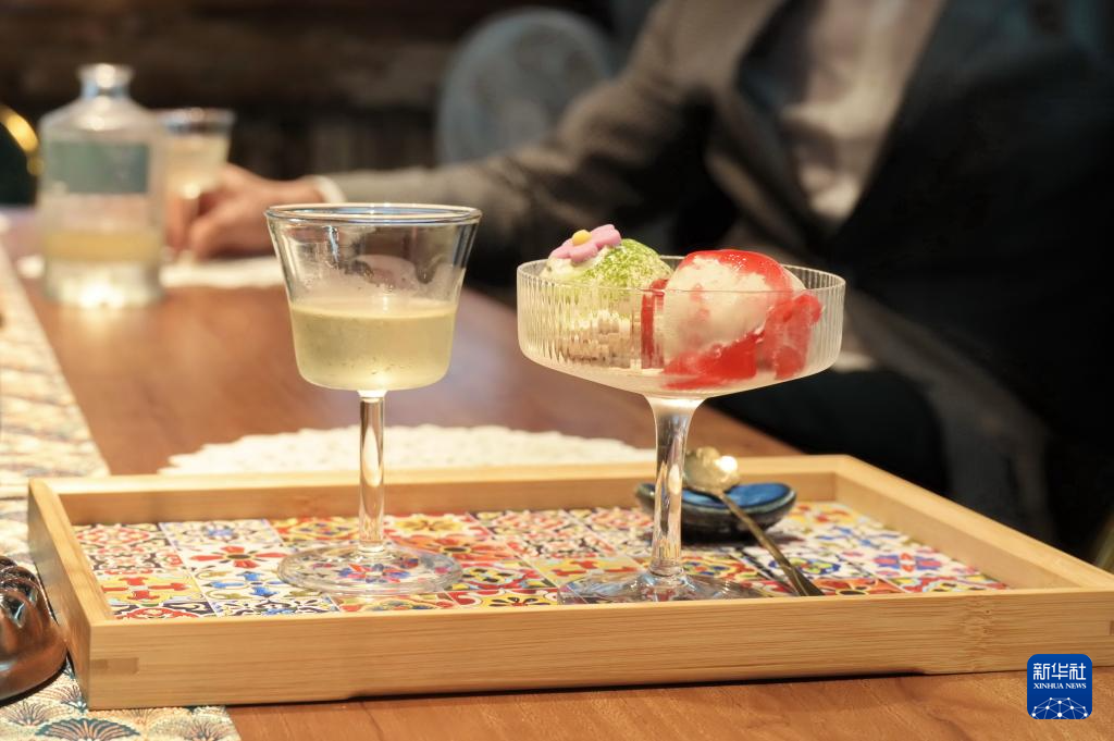 4月9日拍攝的白茶冷萃原液制成的“白茶甘露冰淇淋”等新式冷飲。